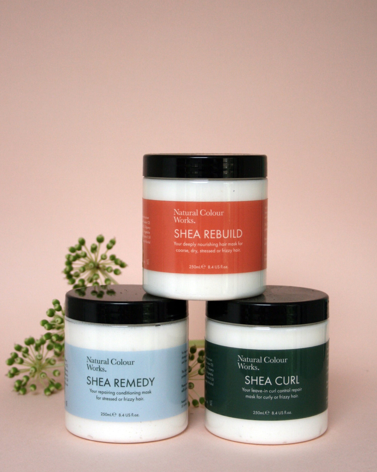 Handcrafted in our London salon, our Shea Collection offers three tailored treatments. Shea Remedy adds lightweight hydration for fine or perimenopausal hair. Shea Rebuild delivers deep nourishment for coarse textures, while Shea Curl, a leave-in formula, enhances and styles natural curls effortlessly.